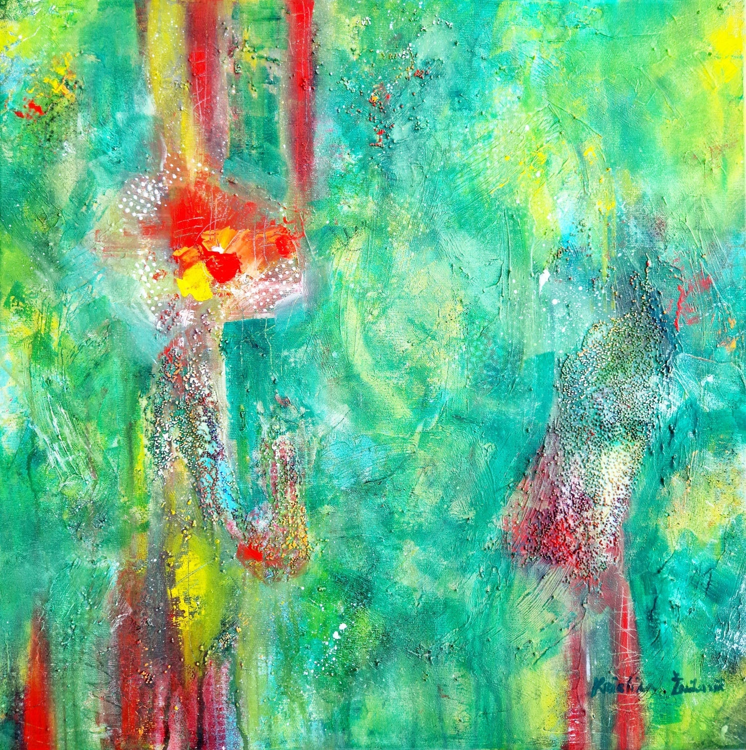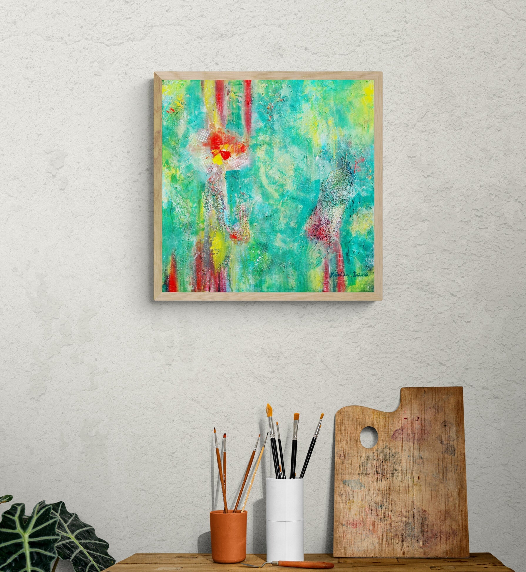 This captivating artwork blends vibrant acrylics with diverse materials to create a rich tapestry of texture and color. Each layer is meticulously applied, resulting in a dynamic composition that invites closer inspection. The interplay of various media adds depth and intrigue, offering a unique visual experience that evolves with every glance. The gallery wrapped canvas provides a seamless, modern finish, making it ready to hang and enjoy immediately. Perfect for contemporary art lovers, this one-of-a-kind piece brings a sophisticated and creative touch to any space, transforming your home or office with its bold presence and imaginative flair.
