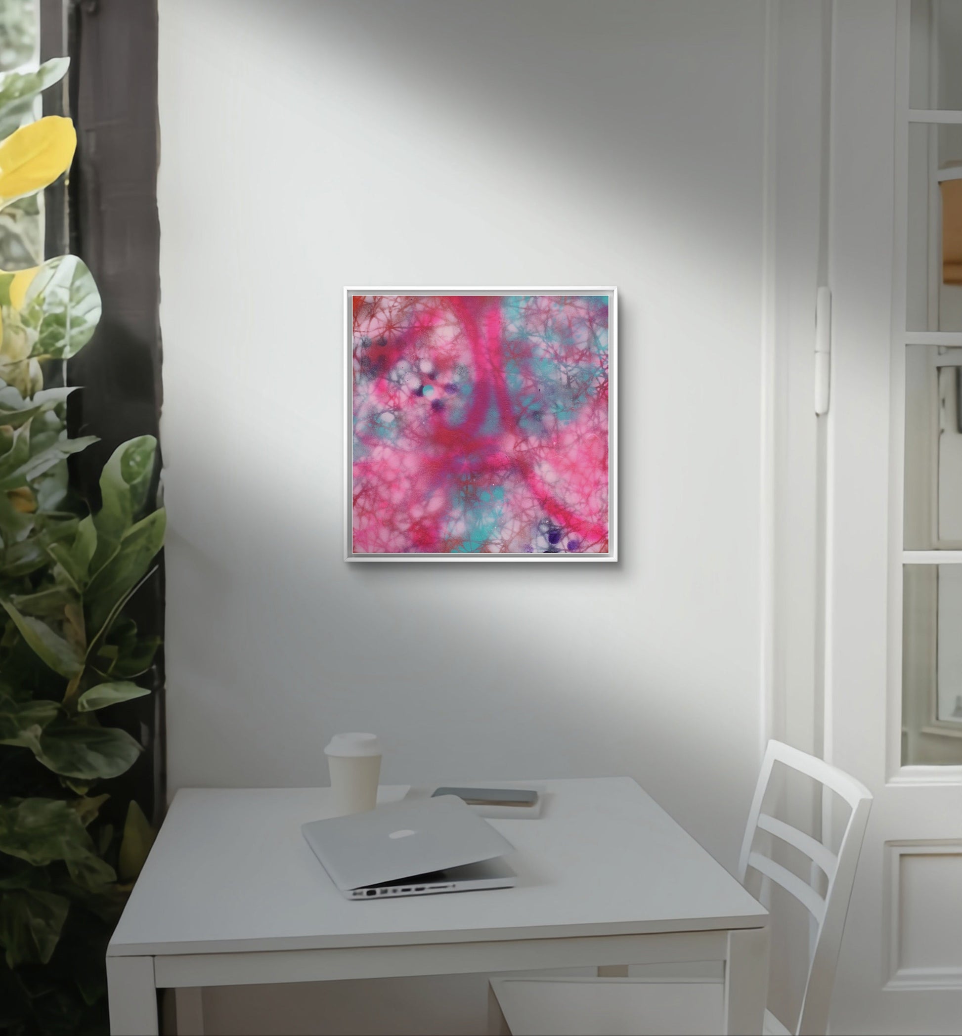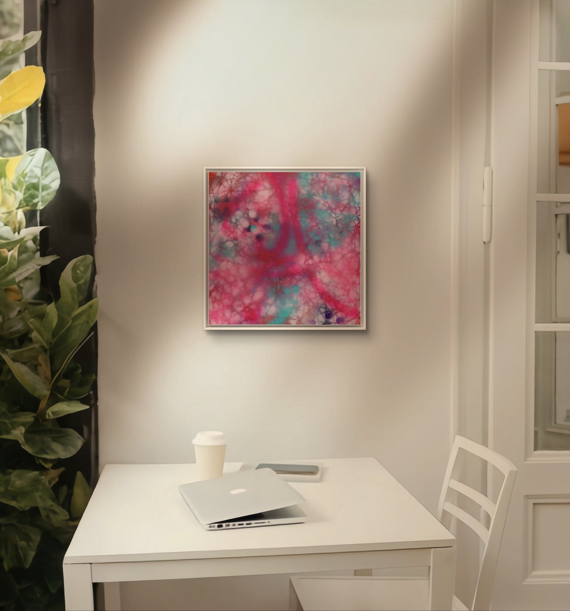 This exquisite piece combines vibrant acrylics with diverse materials to create a captivating mosaic of texture and color. Each element is thoughtfully layered, resulting in a dynamic and engaging composition that draws the viewer in. Ideal for adding a touch of sophistication and creativity to smaller spaces, this unique artwork is perfect for art enthusiasts looking to elevate their home or office decor. Additionally, consider exhibiting this piece as part of a multiple collection to create a striking visual ensemble that enhances the overall impact and transforms any space into a gallery of modern art. Experience the allure of original art with this stunning, compact masterpiece.