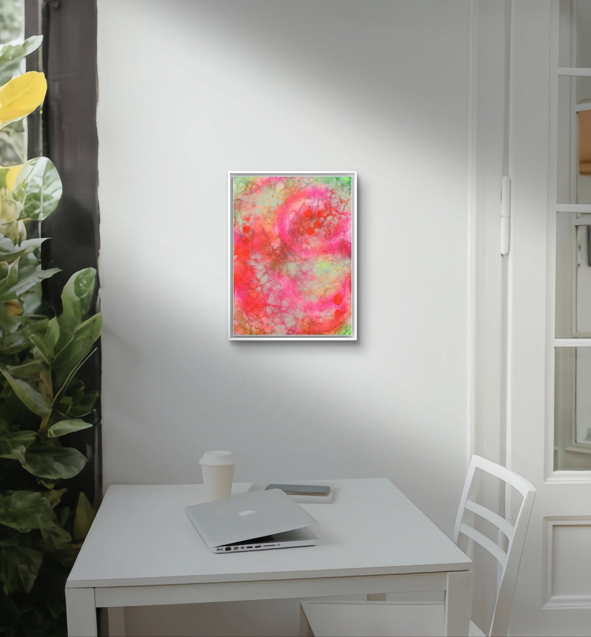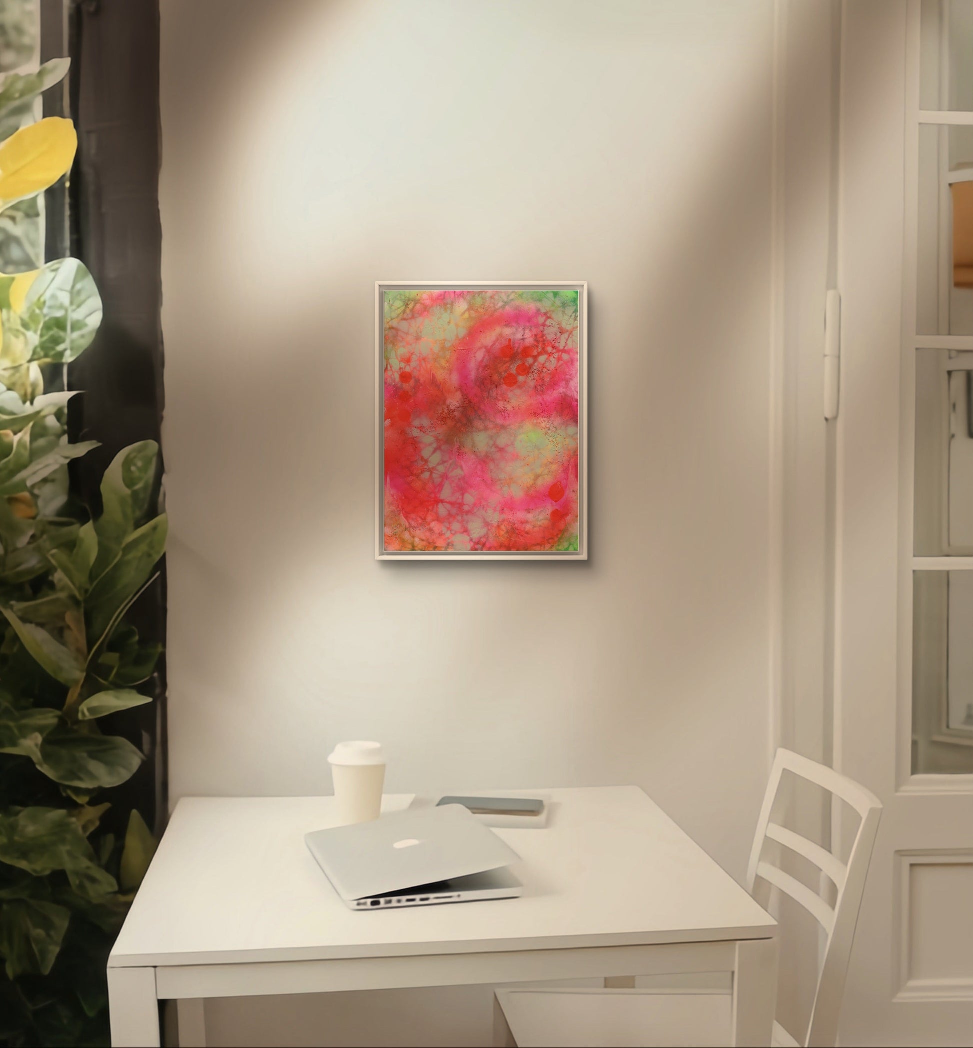 This exquisite piece combines vibrant acrylics with diverse materials to create a captivating mosaic of texture and color. Each element is thoughtfully layered, resulting in a dynamic and engaging composition that draws the viewer in. Ideal for adding a touch of sophistication and creativity to smaller spaces, this unique artwork is perfect for art enthusiasts looking to elevate their home or office decor. Additionally, consider exhibiting this piece as part of a multiple collection to create a striking visual ensemble that enhances the overall impact and transforms any space into a gallery of modern art. Experience the allure of original art with this stunning, compact masterpiece.